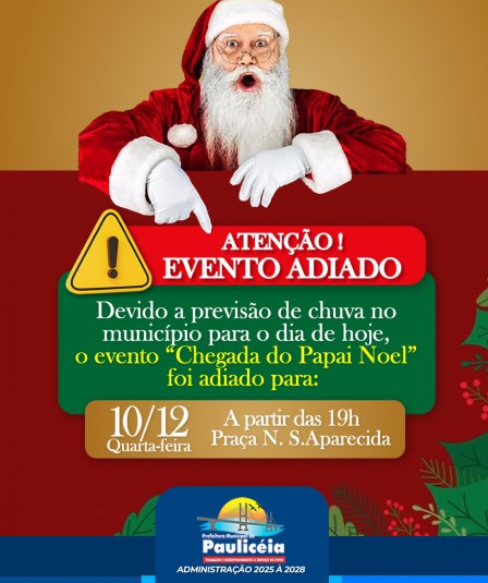 Evento "Chegada do Papai Noel" foi adiado.