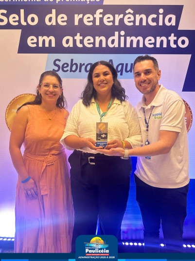 No dia (24/02), Paulicéia recebeu o Selo Ouro do Prêmio Sebrae de Referência em Atendimento 2025, reconhecimento referente ao ciclo de atendimentos realizados em 2025, que destaca a qualidade dos serviços prestados aos empreendedores do município.